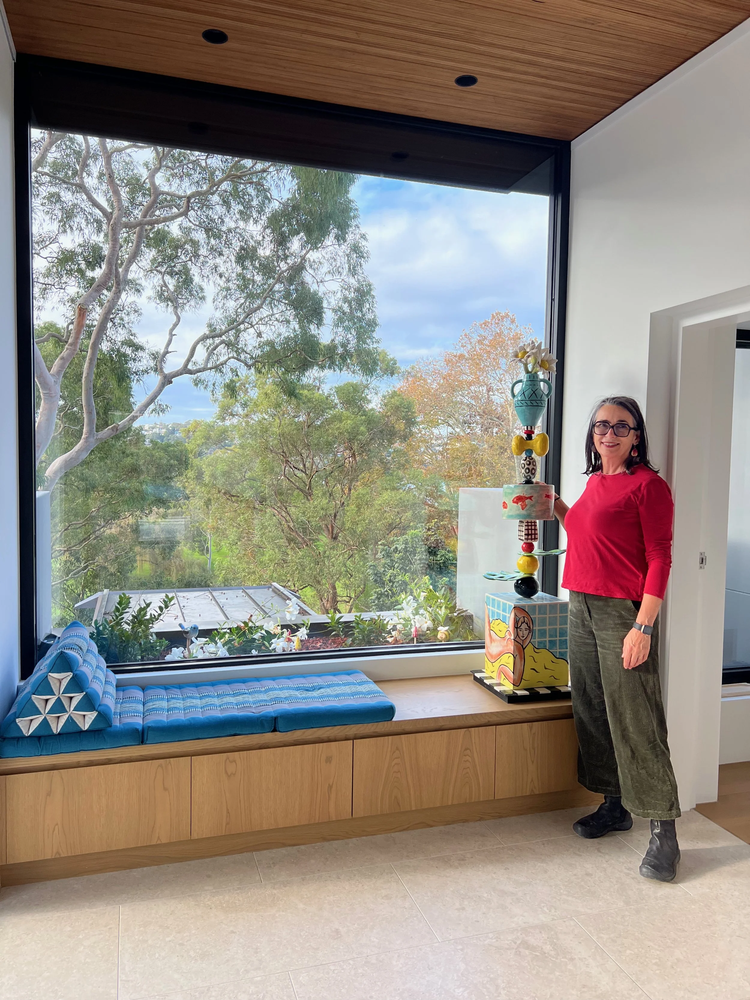 From each exhibition comes the seed for the next. These ceramic licorice allsorts so popular at the Fair are now leading into some new Memphis-inspired work to be exhibited in October at The Sydney Ceramics Market, Carriageworks.